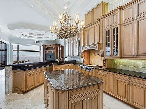 Unobstructed, Spectacular 360 panoramic views from nearly every room were the inspiration behind the design of this one of a kind riverfront estate. Upon entry, be immediately drawn to the long, wide water views just beyond the floor to ceiling glass sliders and infinity edge pool and spa. A few steps away, a Trex dock houses your private boat lift and jet ski lifts perfect for experiencing the true Southwest Florida lifestyle, only a short distance from Gulf Harbour Yacht & Country Club and the Gulf of Mexico. Residents will also appreciate the many amenities found in the home to include, "his and her" offices, exercise room, game room with kitchen & bar and open balcony all with extraordinary views. Gym equipment, sauna, and pool table included along with theater surround sound system! All chandeliers and fan lighting included! Security alarms. The home is unfurnished and all wall colors have been upgraded to neutral color and the wallpaper has been removed! A MUST SEE!