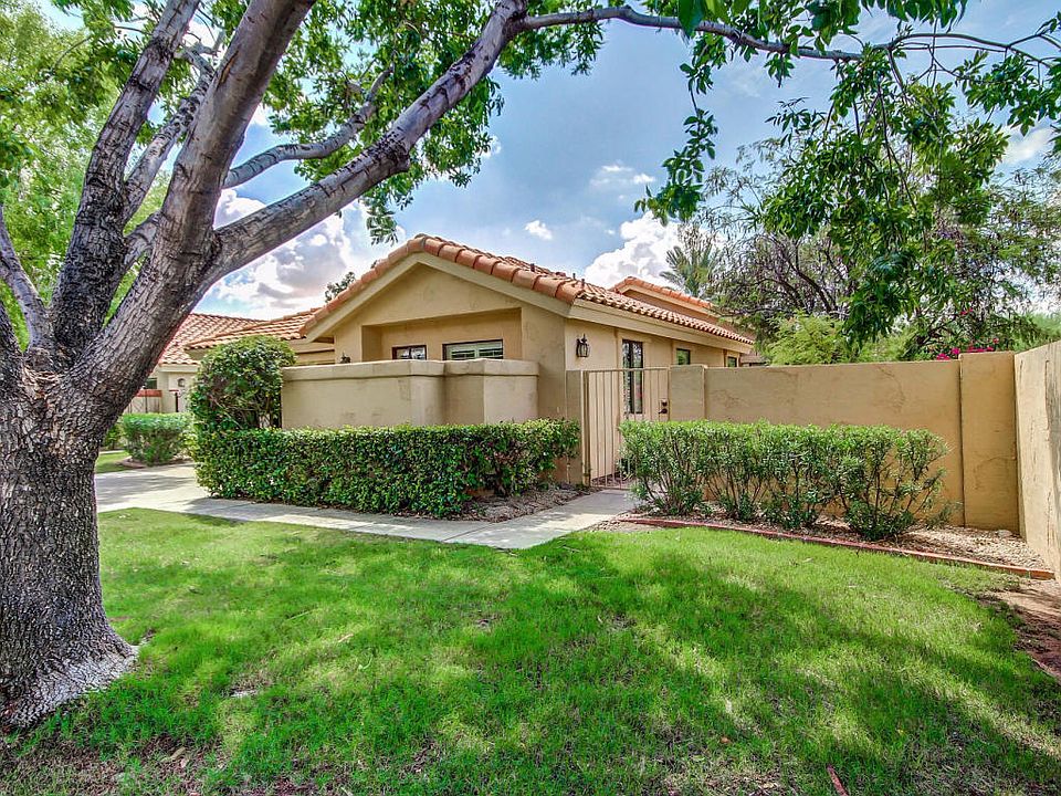 Welcome to one of Scottsdale's finest zip codes, 85260! Beautiful Scottsdale home situated in premium oversized cul-de-sac lot. Soaring ceilings, new plush neutral carpet, french doors to patio, ceiling fans, cozy fireplace, and soothing interior palette. Spacious open floor plan, plantation shutters, plant shelves, tile floor in all the right places, formal dining area, and wet bar. Bright and airy eat-in kitchen features newer SS appliances, breakfast bar, and wood cabinetry. Charming breakfast nook. Relax or entertain under the backyard covered saltillo tile patio. Decorative fountain in front yard with beautiful mature landscaping. Community Paths, Tennis Courts, Heated Pool, & Spa, and Front Yard Maintenance included in HOAs.