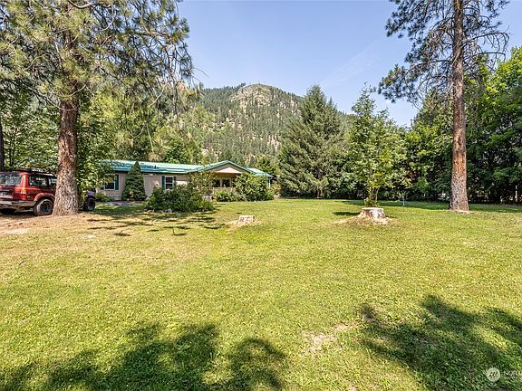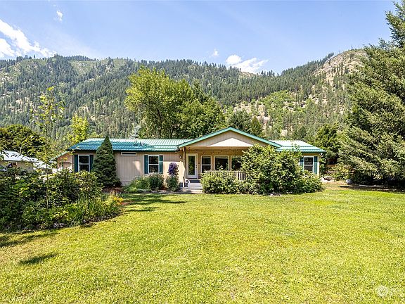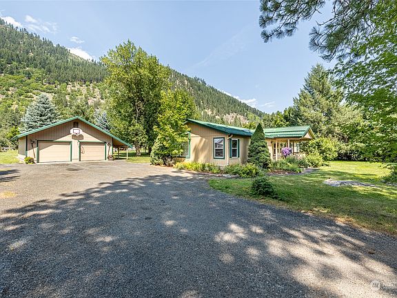 Secluded, treed property at the end of private driveway. Potential buildable space for Accessory Dwelling Unit (ADU). Current 3 bedroom, 2 bath single level living. 1 mile from Leavenworth. Covered porches, front and rear of home. Detached two car garage with storage space. Property is nice mix of sunny and shaded grass, mature trees and garden. Private well and septic system on site. Irrigation water supplied to property (May - October). Neighborhood access to Icicle River at the end of Shore Street. Nearby access to Icicle waterfront, just down the road in addition to Icicle Ridge trail and Enchantments. Views of Wedge Mountain, Icicle Ridge, Snow Creek, and Mount Home ridge.