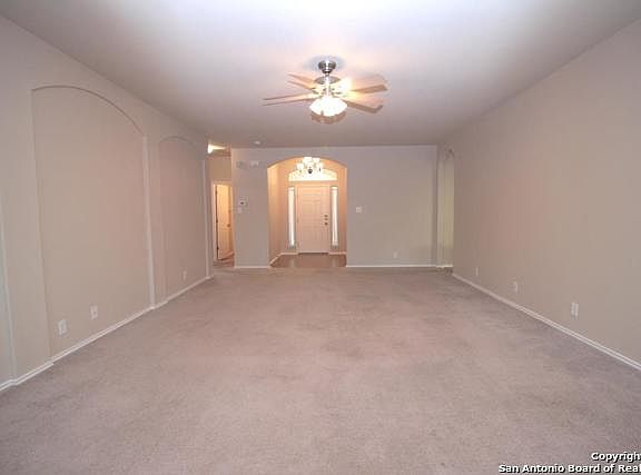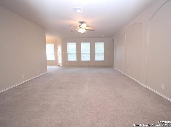 Charming 1-story home featuring 3 bedrooms and 2 bathrooms with an open floor plan and spacious living area. The kitchen is equipped with black appliances, including a built-in microwave, smooth-top range with a self-cleaning oven, and a breakfast bar for casual dining. The home offers separate eating and dining areas, with ceramic tile and plush carpet throughout, and ceiling fans in all rooms for added comfort. The primary bathroom features dual vanities, a garden tub, and a stand-in shower. Step outside to a covered patio and large backyard, ideal for entertaining. Schedule your showing today!