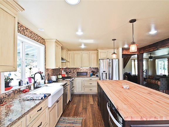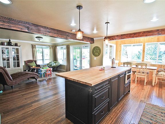 Beautiful 1900 sg ft home on 5.75 acres with stunning mountain views is newly updated throughout! This 3 bedroom, 2.5 bath home has it all. Sweeping hardwood floors, granite counter tops, spacious island in the kitchen, stainless steal appliances, rustic wooden beams, and more. Light flows from the large windows, open floor plan with great functionality. Full wrap around deck, shed, greenhouse, water feature, and spacious amounts of land for enjoying and entertaining. Hurry, this one won't last!