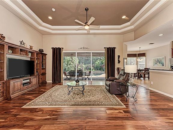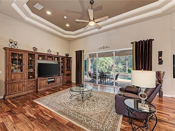 **Multiple Offers. All submissions due by 2PM on 9/19/2020** Prepare to fall in love with this impeccably maintained executive pool home poised on a beautifully landscaped and private 0.4-acre lot in amenity-rich GreyHawk Landing. The open, split bedroom floor plan offers 3 bedrooms, two bathrooms, a den and a 3-car garage while boasting gorgeous, engineered hardwood flooring and voluminous, crowned tray ceilings. Easily entertain from an envious kitchen with granite counters, tile backsplash, lighted cabinetry, gas cooktop, and new French-door refrigerator, built-in oven and microwave. Open the fully-pocketing sliders to take your meal poolside on the private, paver lanai. The large, free-form pool and spa are gas heated, self-cleaning, and finished with high level dark PebbleTec. When it???s time to relax, disappear into the owners??? retreat where you???ll be pampered with private lanai access, 7??? picture windows, two custom closets, dual sinks, garden tub, spacious shower, and a separate comfort-height commode. Some of the other key features include a new AC coil and condenser, HVAC antimicrobial light, new hot water heater, and new GE washer. Be sure to view the interactive 360 tour and to read the Full Features List to learn about all this home has to offer! GreyHawk Landing is a gated community with two resort-style pools, fitness center, lighted tennis and basketball courts, ball fields, bass-stocked lakes, fishing pier, miles of nature trails and fun for all ages!