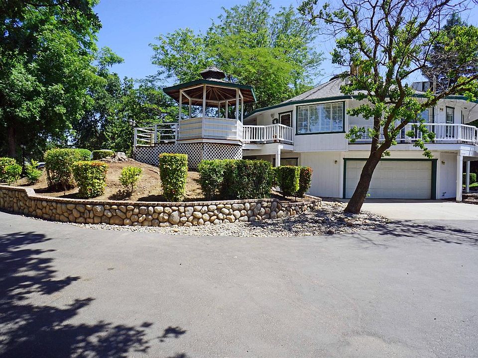 Country living at its best! This beautiful Custom home sits on almost 5 acres and includes mature landscaping, orange trees, and a large detached 4 car shop to enjoy your hobbies. Enjoy the panoramic views from the wrap around redwood deck. Upon entering you will be impressed with the spectacular living room that features custom wood ceilings, built in bookcases, hardwood floors, new carpet and freshly painted interior.The bright cheery kitchen features two kitchen sinks, large pantry, gas cook top and French door access to patio deck.The Master bedroom has custom cabinets that provide extra storage, French door access onto the deck and a master bath with duel shower heads, his and hers sinks and a large walk in closet. Downstairs enjoy the game room with custom cabinets and two more bedrooms and bath. The oversized attached 2 car garage has 6'' exterior walls and insulation. Designed to be energy efficient with upgraded insulation, 4' roof overhang and ceiling fa ns in most rooms.