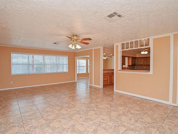 The home has been BEAUTIFULLY UPDATED with wood laminate floors in all 3 bedrooms,tile floors on rest of the house , new kitchen cabinets, energy efficient windows ,AC is only 2 years old, roof 8 years old, pluming lines have been replaced, modern neutral paint, covered porch with extended patio and sprinklers in front yard. The home is in IMMACULATE condition featuring an open kitchen, 3 bedrooms, 2 baths, nice front porch.Buyer to verify room sizes and schools ,Never been flooded!