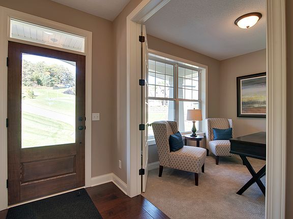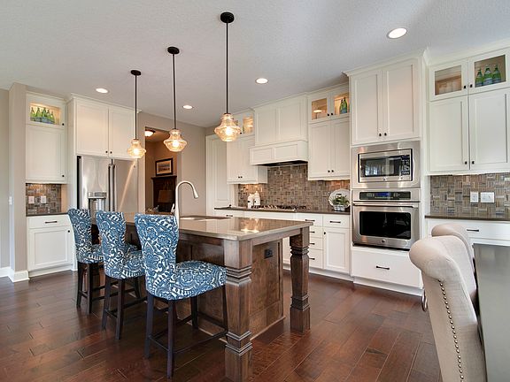 RARE OPPORTUNITY! Brand New Rambler Available for Quick Move-In! This home is loaded with features Gourmet Kitchen, Custom Cabinets Wood Floors, Upper and Lower Level Fireplaces, Solid Core Doors, Soft Close Drawers, Deck, 3 stall Garage with additional 4' depth, Patio Below Deck, Walkout Finished Lower Level Wooded Homesite and Much More!