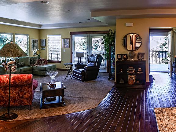 Enjoy carefree urban living in East Medford's Stonegate Estates, near shopping, restaurants and wineries. Upscale finishes and fixtures add a touch of luxury throughout, with hand-scraped oak and travertine tile floors, rough-edge granite countertops and upgraded stainless kitchen appliances, including six-burner gas stove and heavy-duty range hood. The open living area includes island kitchen, formal dining space and light-filled living room. The large covered deck opens to the dining room and living room for outdoor living space. In the living room, curl up by the gas fireplace and enjoy the light and privacy. The third bedroom has French doors opening to the living room, giving the option to use it as an office or cozy den. Plenty of storage, including a HUGE walk-in closet plus extra storage room in master suite. Deeded one-car garage makes this unit particularly desirable. Seller will leave all appliances to make this a truly move-in ready home.