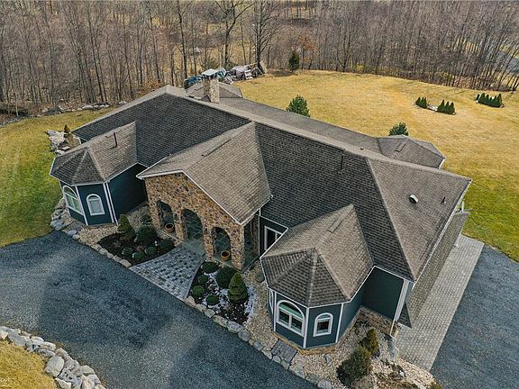 HIGHEST & BEST BY 7/6/22. "This beautiful home sits on 23.5 acres backing up to federal land of the Kittatinny Ridge section of the Appalachian Trail. The home is set at the highest elevation on the street providing 180-degree E/SE views of up to 21 miles away. Experience sunrises & amazing moonrises on a regular basis. Nature lovers, there are hardwood forest w/wildlife abound consisting of white tail deer, fox, wild turkey, bear, coyote, & a bird watchers dream from eagles to redheaded woodpeckers. This raised ranch is an exceptionally well-built home w/high end finishes throughout - solid red oak, marble, & granite flooring, granite & marble countertops & beautiful trim work. The mechanicals entail a 400amp electric service, geothermal HVAC system w/radiant floor heating in the basement & garage. The home is within the “Clean & Green” Act 319 tax as forest reserve. Minutes from Rt 80& NJ. Do not hesitate to make the privacy & serenity that this home offers yours."