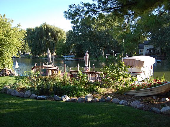 Truly a gem! This great waterfront home is full of wonderful quality features. Beautiful 3/4" hardwood flooring and tile throughout. Vaulted ceilings in the living room, dining room and master bedroom. The living room boasts an attractive stone fireplace. You'll love the Viking professional range and stainless appliances in the open kitchen. The large master bedroom features his and hers closets, walk out to the deck and bath with tiled shower and jet tub.The fully exposed lower level is spacious with a bonus room, 3rd bedroom / bath and rec room area / family room. Beautiful oak built-ins and Heatilator fireplace with marble surround highlight this great living space. Upgraded mechanicals include central vac, tankless water heater and media air filter on the furnace. Custom lawn irrigation system. Plush landscaping when in bloom. Relax on the two-tiered deck overlooking the water. Enjoy boating and your own personal beach. Fees include access to lake, pool, fitness and rec center. * Boat and trailer lift negotiable separately.