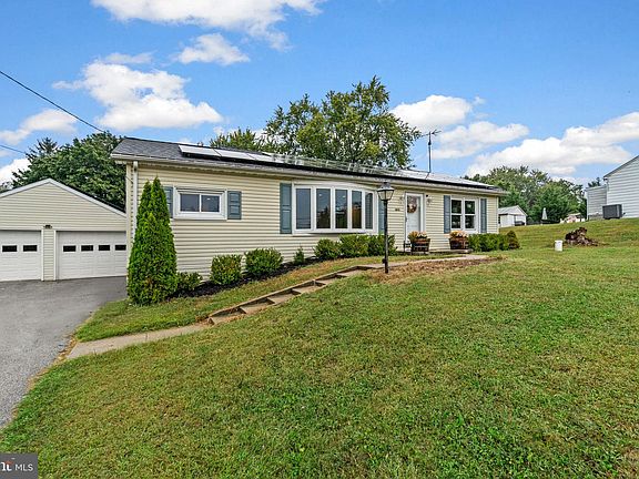 Charming ranch-style residence in desirable Westminster equipped with rooftop solar panels, offering 2,187 square feet of living space, 3 bedrooms, 1 full bath, 1 half bath, and a 2-car detached garage. Luxury vinyl plank flooring flows throughout the traditional main level, where the spacious living room with bay windows and crown molding accents seamlessly connects to the dining area, kitchen, and three bedrooms. The eat-in kitchen features upgraded countertops, stainless steel appliances, abundant counter space, and a cozy breakfast area, along with direct access to the backyard. Three bedrooms, including the primary suite, and a full bathroom complete the main level. The lower level expands the living space with a versatile recreation room, a built-in daybed area, and a convenient half bath with laundry facilities. Additional unfinished spaces provide ample room for storage and utilities, with walk-up access to the backyard. Outdoors, the fully fenced yard is designed for both relaxation and entertainment, complete with a patio, firepit, raised garden bed area, and a chicken coop, creating a private and functional retreat. Updates include: Roof (2022), Solar Panels - owned (2022), HVAC (2022), Washer/Dryer (2024/2025)
