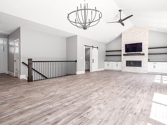 This captivating ranch combines open concept design with a split floorplan layout, creating expansive living areas with open sight lines, soaring vaulted ceilings, and natural light that cascades throughout the home's interior spaces. The gourmet kitchen is complete with built-in cabinetry, wrap around countertops, and a large center island with breakfast bar seating, while the home's great room is anchored by a gas log fireplace with decorative mantle and stone details and accented by an open baluster railing to the lower level. The master suite overlooks the rear yard and features tray ceilings and a luxurious private bathroom with twin sink vanity, water closet, ample shower, and walk-in closet that offers direct laundry room access. The home's finished lower level is home to a large rec room space, third full bath, and two of this plan's five total bedrooms. Other notable features include great curb appeal, a large foyer entry, 2 car attached garage, and the home's large and functional laundry. With hydroseed or sod yard options and landscape packages available, making this luxurious design your new dream home is easy!All costs are estimates only and are subject to change without notice. Finishes, amenities, modifications, and lot selection can increase or decrease cost. Talk to one of our builders today to design the prefect home for you!