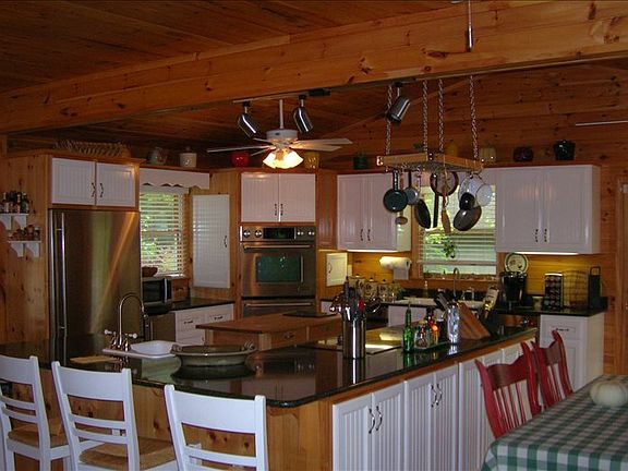 This Home was REMODELED In 1997!!!! Open Floor Plan with oversized kitchen / Breakfast Room, Kitchen has all UP-Graded Jenn Air, Stainless Steel Appliances with focus on Lake Blue Ridge! DEEP WATER LOT WITH COVERED BOAT HOUSE!!! The entire up-stairs is the Private / Oversized Master Suite; Large Screen Porch on Lakeside has an OUTSIDE WOOD BURNING FIREPLACE!!!!!! Furnished Basement with Two Additional Bedrooms! This is the BEST BUY On LAKE BLUE RIDGE with easy access to the City of Blue Ridge!