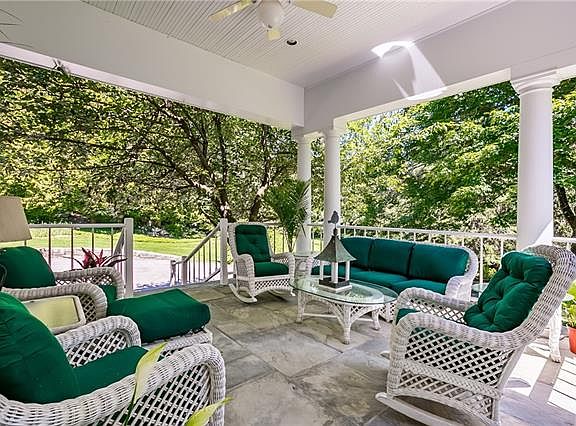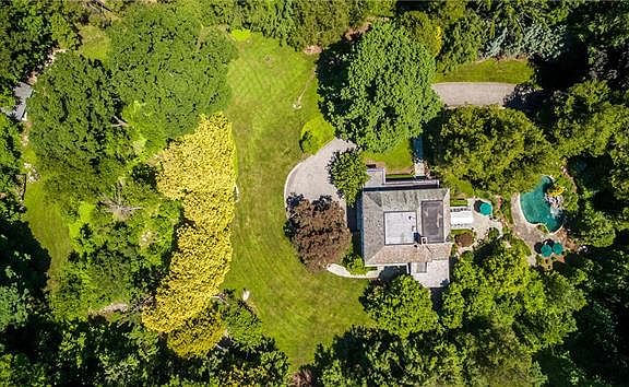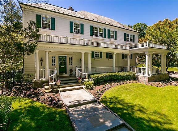Grand-scaled Colonial w/stunning black-bottom pool w/waterfall & spa. Spacious interiors awash in natural light from large windows all around. Entertaining front parlor w/magnificent curved staircase ascending to upper level. Living room w/fireplace, built-ins & bay window. Dining room w/bay window. Fabulous kitchen w/center island, Vermont marble & butcher block tops & windowed breakfast area. Family room w/built-ins & French doors to terraces. Main floor den/office w/bath ensuite (ideal for guest or au pair). Master w/dressing area, fireplace & gorgeous bath ensuite. Spacious bedrooms. Hardwood floors throughout. A rocking-chair front porch worthy of a grand lodge. Privately set in a gloriously gardened landscape surrounded by a carpet of velvety green lawns, ringed by old growth Norwegian Pines & Colorado Spruce. A unique offering. Taxes being grieved.