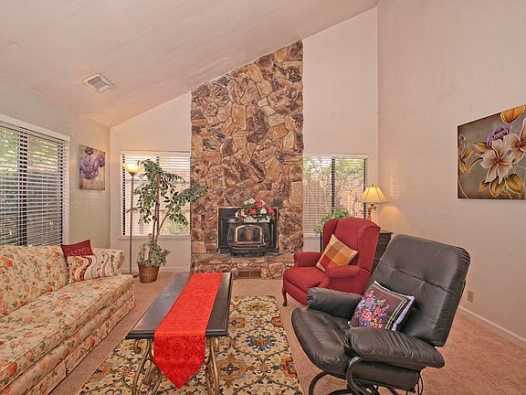 Great location. Minutes from schools & shopping. Spanish style two story 1502 sq.ft. home (sqft taken from tax roll). Large open kitchen w/finished wood cabinets. Pergo flooring that extends into the dining area & through the hallways. Living room has vaulted ceiling & woodstove insert in the fireplace w/floor to ceiling rock surrounding the fireplace.