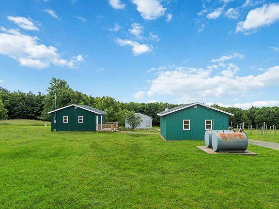 Opportunity awaits! This property can be diversified to create a venue for multiple business ideas such as farming, a vineyard, automotive, commercial repair shop, buildings can be used as storage! This property has loads of options waiting to be explored and expanded on. When you arrive, you will be greeted by the vista of over 10 acres of lush, cleared and meticulously maintained land, surrounded by trees. To one side, you will see 4 outbuildings. There are two main artisan wells, along with a third back up well (currently not hooked up), and a septic system. Building 1 (24x20) has a 1 year old garage door (automatic) and two sections inside and is partially heated and insulated. Building 2 (24x20) is fully insulated and heated; it includes a bathroom, laundry area, kitchen and additional space for storage, is finished in knotty pine, with a 23 x 7 pressure treated deck installed last summer to round it all out. Building 3 (50x24) is a large steel dome barn with a poured concrete slab and 4 foot frost walls, and 16 plus foot ceiling. Building 4 (32x22) and features a poured concrete floor and exhaust fans. At the center of the property you will find rows where grapes have grown with varieties such as Chardonnay, Reisling and Lucy Kuhlman. At the back there is a 60x60 poured concrete pad and loading ramp which can be used for many purposes.