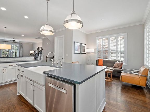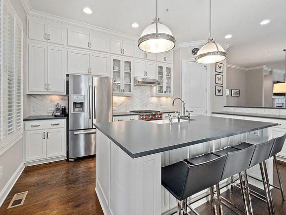 Beautifully renovated end-unit home enjoying a quiet location and views of nature in this gated community steps away from schools, retail and expansive parks system. Open floorplan plus covered deck off kitchen for easy living and entertaining. Many extra living areas; breakfast nook/keeping room, top floor den/TV room, bonus 3rd car/gym/storage on main. Renovations: new kitchen, all bathrooms, deck roof addition, upstairs HVAC & water heater. Highly functional new kitchen with WOLF stove, new cabinetry, apron-front sink, honed stone countertops & walk-in pantry. Large living/dining great room with built-in bookcases & cabinetry surrounding the fireplace. Hardwood floors throughout. Newly repainted throughout including garage floor! Don't miss the virtual tour with room-to-room exploration. Relax and enjoy this luxurious home that has it all!