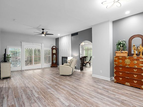 This gorgeous 5 bedroom, 3 bath, 3 car garage home is totally updated. Some many upgrades made to the home. Check out the beautiful Plantation Shutters for all the windows on the main level. Added kitchen gas line for the new Gas Stove/with double oven and air fryer feature. Water softener with reverse osmoses and whole house purifier. Air ducts have been cleaned. Granite kitchen counter top and added slide outs in cabinets and pantry. Lifeguard gutter protection added. Extended the deck and added Electric Awning with wind sensor. Garage floors epoxy painted and garage insulated. New insulated garage doors and new openers that are front mounted. New exterior paint and interior paint. Replace fence and front and back light fixtures. New control system for sprinklers with rain shut off. Add front entrance hand railing. New garage stairs into the home for easier access. Living and hearth/dinning has a see through GFP. Master Suite has a electric FP in bedroom and bath. Gorgeous beamed ceiling and graduated ceiling fan/light fixture. Great walk in closet with 2 sink tall vanity, soaker tub and a 5ft walk in tile shower. Home is better than brand new and a must see. Beautiful home!!!