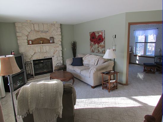 Move-In Ready Contemporary Cape in Great Neighborhood! One Bedroom on Main Floor and 2 Generous Bedrooms Upstairs. Open Concept Living Room w/Natural Fireplace. Large Eat-In Kitchen. 2 Full Baths. Exposed Lower Level with Finished Family Room with Full Sized Windows and Half Bath. Extra Storage Loft in Garage. Completely Fenced Yard! Backyard Deck! Located Very Near Fox River Parkway!