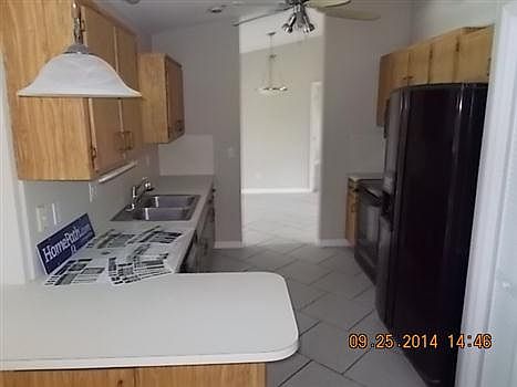 Enjoy the cool weather on the screened patio at this 3-bedroom/2-bath 1525-SF home on.28 acres in Palm Bay. Great features include new paint through out, living room with tile floors, dining room, family room, inside laundry, kitchen with refrigerator, dishwasher, laminate countertops, breakfast bar for quick meals, electric range and sliding glass doors. This is a Fannie Mae HomePath property.
