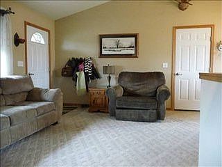 Great home for first time buyer and it qualifies for Rural Development financing! The main level features all new carpeting, a large master bedroom with full bath and walk-in closet, a spare bedroom and another bathroom, and the dining room opens up to a very nice, large, covered deck for entertaining and those summertime barbeques. The basement features all new carpeting, a large bedroom with huge walk-in closet, bathroom and an L-shaped family room with wet bar, built-in microwave, cabinetry and an extra refrigerator, which walk-out to the fenced back yard.