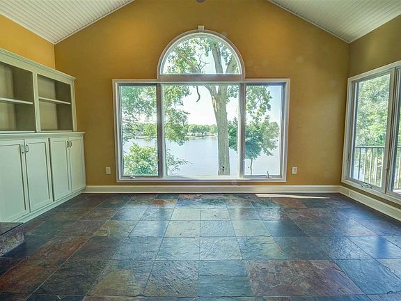 One of a kind, custom built, brick & limestone split ranch w/ walkout lower level on 83' of prime frontage on the St Joseph River w/views from almost every room. Incorporating many natural materials & restored architectural pieces such as marble, granite, slate, copper, brass, mahogany, limestone and old wood barn beams. 6' Mahogany & glass front door & 8-panel hand carved mahogany interior doors. Custom features such as arched doorways, vaulted & tray ceilings, crown molding, bull nose corners, wide trim and beautiful light fixtures. All the floors are tiled with either marble, slate or granite & will stay comfortable year round with radiant floor heat. 600+ sqft luxury owner's suite has marble floors, a sitting area, private deck, dressing room/closet, jetted soaking tub, and dual, head walk-in shower, double sink & make-up desk. Other bedrooms include 2 more master suites and two bedrooms sharing a Jack-n-Jill bath. Gourmet kitchen w/hand hammered copper sink & cook top vent, maple cabinetry, granite counter top & back splash, brand new stainless appliance and a butler's pantry with prep sink. Family room w/ fireplace, cathedral wood slat ceiling & floor to ceiling windows. Finished lower level walkout w/ billiard room, living room/kitchen. rec. room with wet bar and underground wine cellar. Maintenance free dock w/ cantilever 4' units extending 25' out over the cove