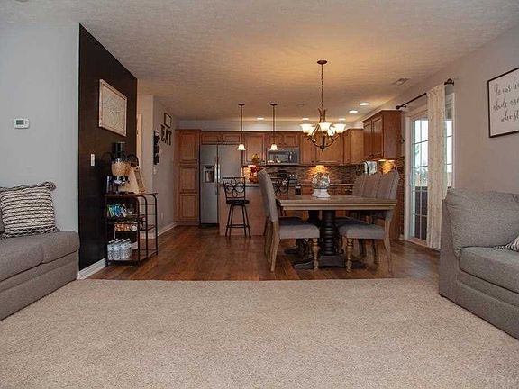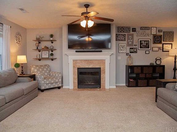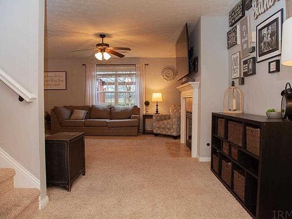 This beautiful 2 story home has it all, nestled at the end of a cul-de-sac in McCutchanville school district. Gracious two-story entrance invites you in from the covered front porch into this ideal open floorplan. Abundant storage space throughout. Large great room with a gas fireplace is open to the kitchen and dining room. Freshly painted interior in neutral / gray tones. Spacious kitchen with ceramic tile backsplash, under cabinet and pendant lighting, breakfast bar, soffit lighting in ceiling and all appliances are included. Newer range and dishwasher. Half bath and laundry center just off the 2.5 car garage makes everyday life easy. Extra pantry area in laundry room. Sliding door from kitchen leads onto covered back patio and privacy fenced back yard. Enjoy al fresco dining on the covered patio, relax in the hot tub, cool off with a splash in the new pool, and enjoy spectacular sunsets from the gated deck area. Sit under the stars and lights around the back yard fire pit. A swing set is next to the patio for the little ones. The family room upstairs is bright and open to the two-story entry foyer. Huge owner s suite with a walk-in closet, full bath, two windows and extra space for desk or sitting area. Two other large bedrooms share a full bathroom. Upgrades include LED lighting throughout the home, zoned heating & air with programmable thermostats on both levels on an oversized Trane system. Get ready to enjoy every season in your own backyard.