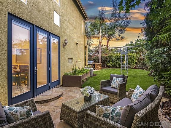 Call Adam Loew 858-342-8232. Highly upgraded home, conveniently located across from Carmel Creek, walking distance to 4 schools & Del Mar Highlands Shopping. Great for families, w/ a bedroom/bathroom down, pecan hardwood, chef s kitchen, large family room, high volume ceilings, and an entertainer s backyard, w/ fresh sod, 2 water features, firepit, & a stacked stone seat wall & built-in bbq. Freshly painted, mostly new Milgard windows, along w/ multiple built-ins and tvs that stay, make it move in ready! Also for lease