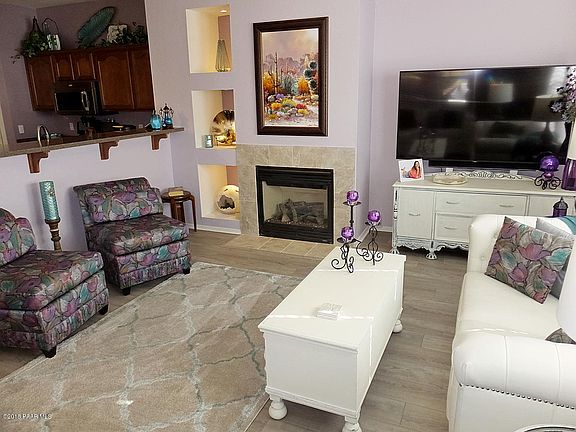 Immaculate Home! This 1-story inviting townhouse is move-in ready with gorgeous flooring and cheerful paint colors. The large, well-appointed kitchen features solid surface counters, tons of cabinet and counter space, walk-in pantry, gas range, micro, refrig, dishwasher, and delightful breakfast bar. The open layout is terrific for entertaining as guests can relax in the great room by the cozy gas fireplace or sit at the nearby dining room table. Master bedroom comfortably fits all your king-sized furniture. Bath has walk-in shower, soaking tub, 2-sinks, and walk-in closet. Bedroom 2 is bright and roomy. The 3rd room can be used as a den, office, or hobby room. Outdoor space is a joy with pavers and artificial turf. 2-Car garage has great storage and workbench. Community center is nearby.