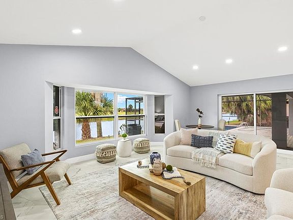 Incredible opportunity (FINANCE AVAILABLE AT 4.99% FIXED 30 YEARS APPROVAL REQUIRED) in the highly sought-after gated golf community of Kelly Greens! This spacious 3 bed, 3 bath home offers stunning southern exposure with panoramic water and golf course views from nearly every room. Split floor plan features a central kitchen, separate living and family rooms, and a large screened-in lanai with pool, spa, and pool bath—perfect for entertaining. Kelly Greens offers an active lifestyle with an 18-hole Gordon Lewis-designed golf course, driving range, putting green, renovated clubhouse with restaurant and lounge, resort-style pool/spa, fitness center, sauna, 4 Har-Tru tennis courts, and more. Just minutes from Sanibel, Fort Myers Beach, shopping, and dining. Live the ultimate SWFL lifestyle!