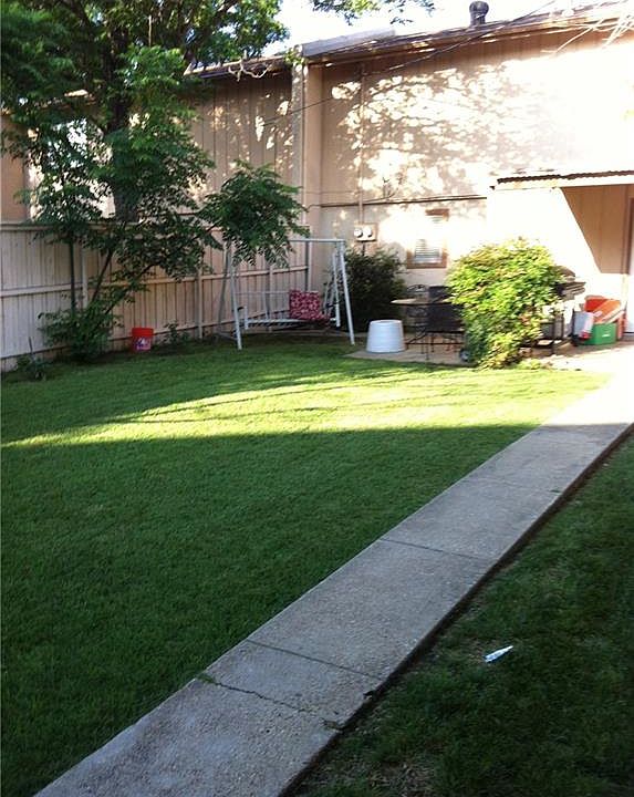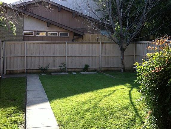 Middle of three attached town homes facing Preston. Unusual large lot with vegetable garden and plenty of room for kids to play. Updated. Living Dining combination can also be home office or second master down. Updates include granite counters in open eat-in kitchen.washer dryer and refrig included. Front gated patio. New windows. Downstairs has shower and large second living area has served as downstairs master or bedroom #3. Can be three bedroom with over 1650 sq.ft (to be verified) plus oversized backyard. Owner is licensed Texas Realtor. 3 guys rent now..but will be clean and move-in quality!