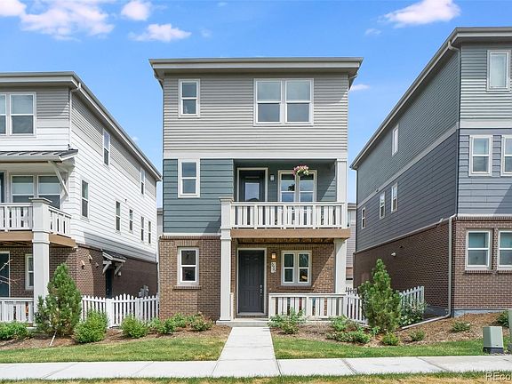 Welcome home to The Heights! From the moment your friends enter your beautifully designed 3-story home complete with brick exterior, and enter the large open great room with light wood grain floors, they are going to want to stay for days...enjoying the covered deck + porch while you fire up the grill, and showing off their home bartending skills while pouring handcrafted cocktails in your upgraded kitchen! 42" espresso cabinets, bright granite counters, large center island with pendant lighting, stainless Whirlpool appliances + oversized windows...unexpected luxury touches can be found throughout this home. The spacious owner's suite, upstairs laundry room + huge walk-in closet make getting ready for work or working from home easy. Welcome clients into the foyer/flex room and private fenced side yard for socially-distanced meetings, enroll the kids in coveted Cherry Creek Schools, hit some balls or reserve a tee-time at nearby Heather Ridge Golf Course...and take a break close to home or downtown with nearby shopping, dining + light rail. You are going to LOVE living here!