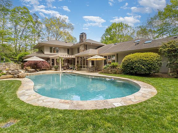 Indulge in the epitome of luxury living with this exquisite estate nestled on a sprawling 1+-acre lot w/gentle upslope driveway, offering unparalleled privacy and tranquility. Step inside and be greeted by the grandeur of VIEWS from walls of windows seamlessly merging the serene outdoors with the elegant interior. Marvel at the craftsmanship evident in every detail, from the built-in bookcases, numerous floor to ceiling windows to the rich hardwood floors that grace most of the main level. The living room, adorned with natural stained trim and walls of windows, exudes warmth and sophistication. The heart of the home lies in the spacious kitchen, where a stone fireplace sets the mood for gatherings and culinary delights. Equipped with top-of-the-line appliances, granite and quartz countertops, and dual dishwashers, this kitchen is a chef's dream. With PRIMARY BEDROOM on MAIN, this estate offers comfort and practicality. The primary bedroom has spectacular grooming room/closets for owners privacy. The DR, office,sunroom on Main offer versatility to owners. Upstairs, 4 additional bedrooms and 2 full baths await. Outside, the resort-like backyard beckons with its pool and natural stone waterfall, creating an idyllic retreat. The pergola adds architectural flair and provides an oasis for outdoor dining and relaxation. Fire up the built-in grill and kitchenette for effortless alfresco entertaining. With its sealed crawl space and meticulous construction, this home epitomizes quality and has been lovingly maintained. Ideally situated near Duke, UNC, RDU, Jordan Lake, and renowned medical facilities, it offers the perfect blend of luxury and convenience for the discerning buyer.
