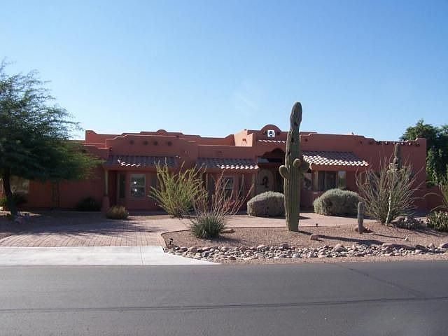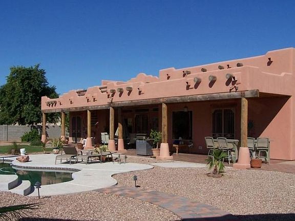 One of a kind semi-custom home on 3/4 acre lot. Main house features 3 bedrooms + den, 3 baths, 4000 sq. feet with guest house, separate living and family room, formal and eat-in dining, breakfast bar, gas range, kitchen island, lots of cabinet space, oversized master bedroom with Jacuzzi tub and walk in shower, his and hers closets, fireplace, split floor plan, sky lights, another fireplace. Guest casita (600 sq feet) features 2 bedrooms + full bathroom. Backyard is fully landscaped with heated pool, spa, putting green, covered patio length of home with stairs to balcony, 3 car garage. Custom pavers in front and backyard. What are you waiting for? This is a must see.