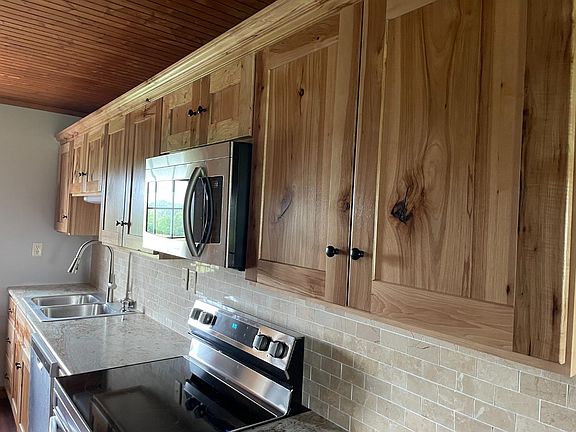 Come take a look at this 1200sq Pole barn style home! With 2 bedrooms and 1 bath the rest of the home has an open concept. New Hickory cabinets and central HVAC make this a nice and comfortable place to live. Outside you have an attached 2 car garage and both a front porch and a rear deck all sitting on over 1.5 acres, make this your little piece of paradise, call today!