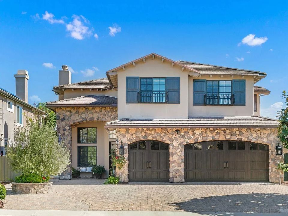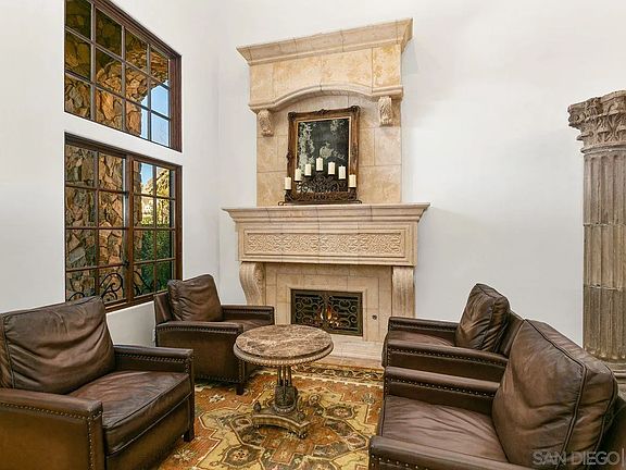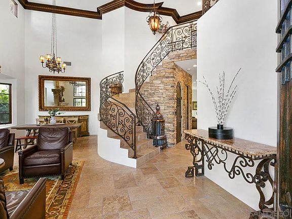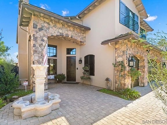 Located in desirable South of Pomerado neighborhood, this exquisite home is filled with many elegant details at every turn!Immaculate turn-key condition! This spacious floor plan offers a master suite, 2 secondary bedrooms upstairs plus openbonus/loft area along with full bedroom & bath downstairs. Beautiful sense of entry features a formal living & dining area w/voluminous ceilings, wrought iron staircase & stone accented walls. Other notable features include travertine flooring,custom crown molding, plantation shutters, custom built-ins, & 4 fireplaces throughout. The gourmet kitchen features acenter island, a walk-in pantry/closet, Viking range cooktop and ovens, and a spacious adjoining eat-in area. Master suiteincludes a fireplace, accented tile ceiling & private balcony along with a luxurious bath with dual walk-in closets & largesoaking jet tub. Relax and entertain in the beautifully landscaped backyard with a cozy outdoor fireplace and covered patioarea to enjoy. Paved stone surrounds this home from the front to backyard. Take advantage of being part of a familyfriendly community with low HOA fees - Whispering Ridge Swim & Tennis takes just a few minutes to walk to and the newFairbrook neighborhood park is a short distance away. Additional features include ring doorbell, security system, watersoftener & leased solar - buyer to qualify for and complete Sunrun service transfer.