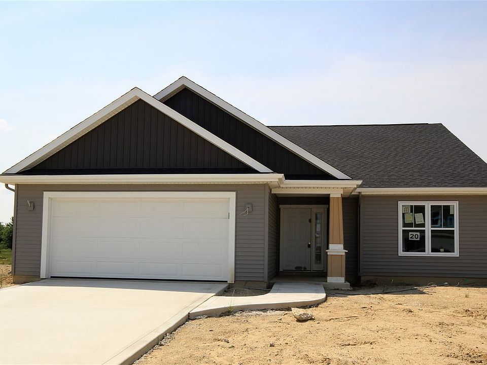 OPEN HOUSE this Sunday June 10th from 1-4! Must see.....Quality built by KAM Homes!! Take a look at this new floor plan with a beautiful view of the water! This home features nearly 1700 sq. ft. of living space w/3 bedrooms & 2 full baths. 9 ft. ceilings w/recessed lighting in the bright kitchen & Living area! Kitchen has Custom Cabinets by D & B, w/open concept into the large 18x15 Great Room with a gas log fireplace. Living room & Master have Tray ceilings. The Master Suite & Bath have a large walk-in closet, Double vanities, & stand up Shower. Cubby area in the laundry room for added organization. Andersen Windows, exterior walls spray foamed & insulated, 95% Energy efficient furnace. For convenience this home has pull down stairs & OSB boards for extra storage! All lighting is LED. Southwest Allen County Award winning schools!! USDA eligible !