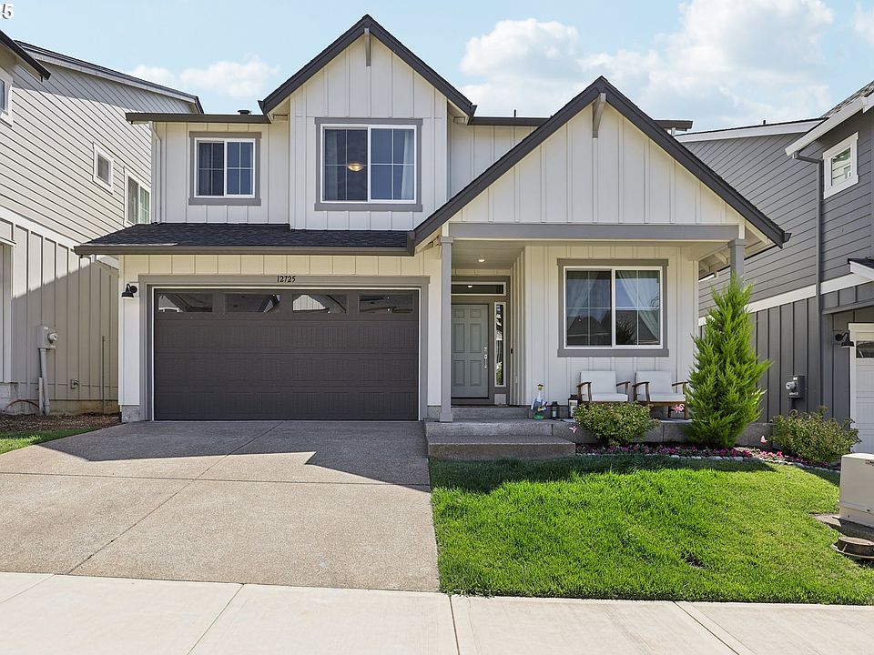 Welcome to one of South Cooper Mountain’s newest communities! This thoughtfully designed home boasts a spacious open floor plan with upscale finishes throughout. The gourmet kitchen features quartz countertops, stainless steel appliances, a walk-in pantry, breakfast bar, and durable laminate plank flooring. The main level includes a full bedroom and bath—perfect for guests or a home office—plus an expansive great room with a gas fireplace. Wrought iron balusters add a touch of sophistication to the staircase. Upstairs, enjoy a large bonus room and a luxurious primary suite with a walk-in closet and a spacious 5-piece bath. All bedrooms feature upgraded lighting for added comfort and style. Energy-efficient features include a tankless water heater and Energy Star appliances. The neighborhood has a beautiful walking trail that leads to a park with a playground, and the home is just 1 block from Mountainside High School.