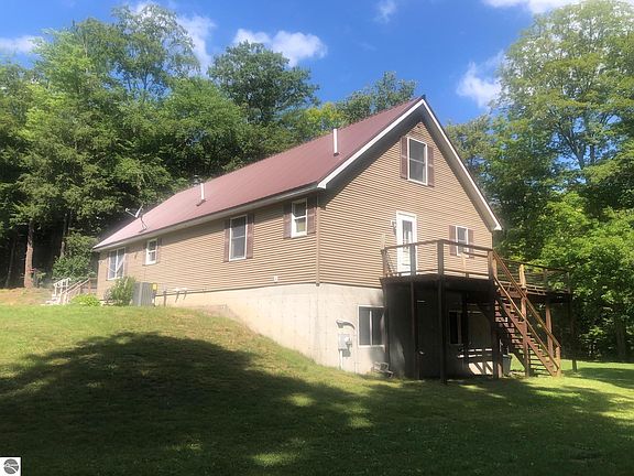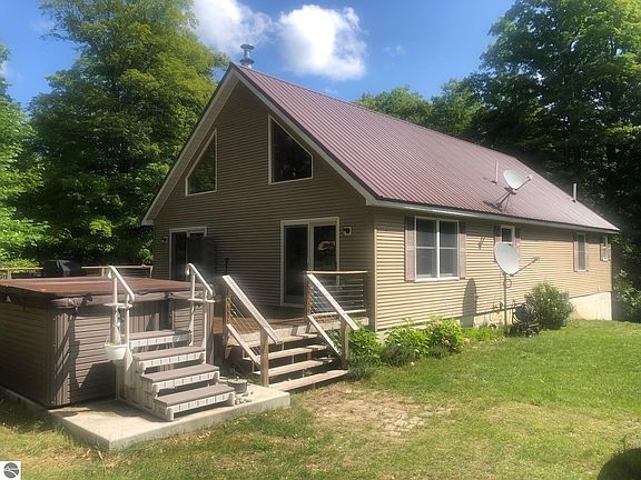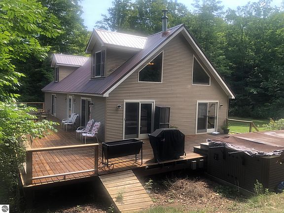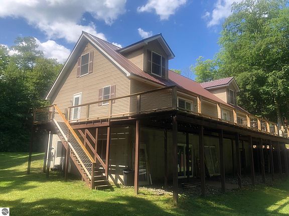 The spot on the River you have been looking for! 522 feet of easy access on Big Bear Creek. The 4 Bedroom, 4 bath home with incredible views of the water on 3.12 Acres. Wrap around deck with patio sliders giving easy access to your river view, Swim Spa and Hot tub. New Kitchen with granite counter tops, large open family and dinning room with stone fireplace. Upper level is a Master bedroom suite with private bath and two larger closets. Finished walk out lower level with 2-3 Bedrooms and large family room. Three outbuildings, 24x36 Insulated two car garage, 32x42 four car garage, 14x28 storage shed with a loft. This property has everything Northern Michigan has to offer, with endless fishing and recreation right out your back door.