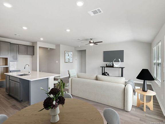 Brand new, energy-efficient home available by Oct 2025! Sip your morning coffee at the Henderson's convenient kitchen island overlooking the dining and living rooms. In the primary suite, elegant sloped ceilings complement the sizeable space, including ensuite with dual sinks and large walk-in closet. Starting in the $300s, Arcadia Ridge spans approximately 700 acres in Far Northwest San Antonio. This master-planned community features exceptional amenities, including a community pool, scenic trails, and a playground. Conveniently located near Loop 1604 and US-90, residents enjoy quick access to shopping, dining, and entertainment. The community is served by the highly rated Northside ISD schools. Each of our homes is built with innovative, energy-efficient features designed to help you enjoy more savings, better health, real comfort and peace of mind.