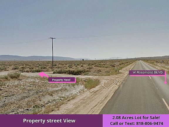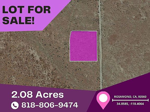 2.08 acres for sale. OWNER FINANCE IS AVAILABLE WITH ONLY $7,000 DOWN. XXX Seller has 6 others lots for SALE in Kern County... The Parcel Number is 359-292-01-00-7. Vacant land Right ON THE 155th St W and Rosamond Blvd. There`s a dirt road to access the lot. Use photos and GPS for guidance. Future investment. Buyer to conduct all due diligence.