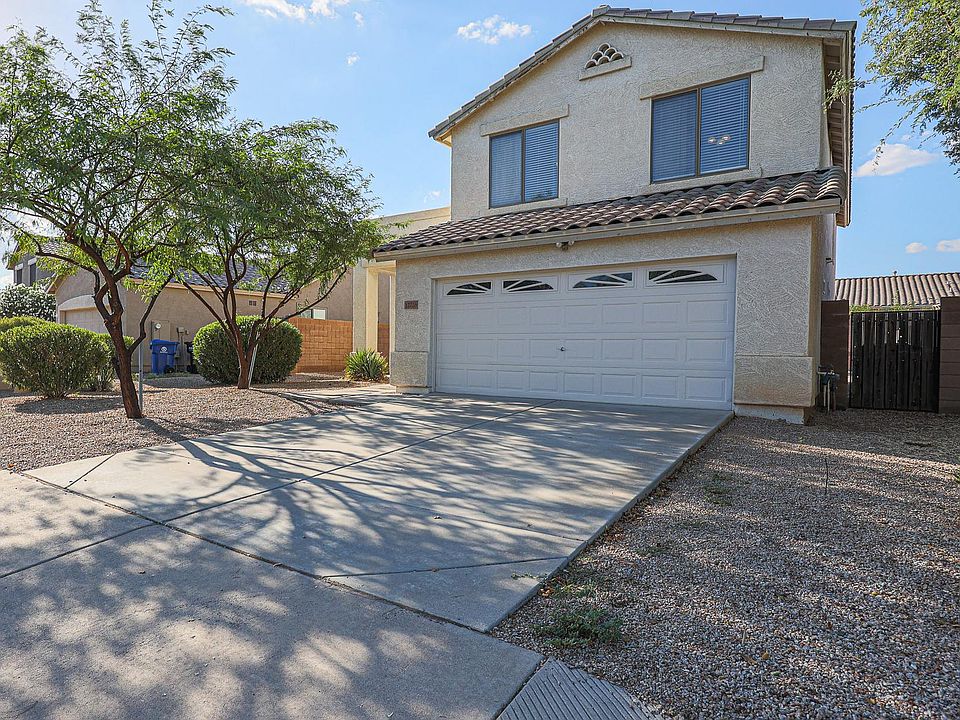 Great move in ready home with 4 bedrooms, 3 baths. One bedroom downstairs with full bath! Large kitchen with center island, and stainless steel appliances and open to large family room. Newer interior paint thru out and newer carpeting thru out. Formal living room and dining room. Monthly landscaping maintenance included. Washer and dryer included as a courtesy only