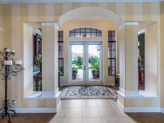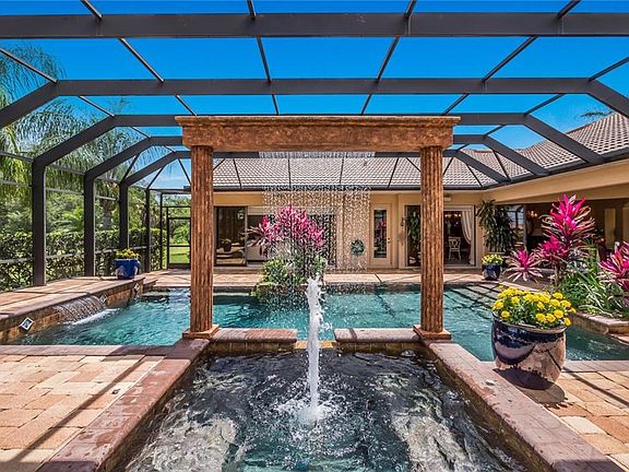 Remarkably elegant, luxurious, and thoughtfully designed. No expense was spared in the construction of this custom 3/3/3 pool home. Quality finishes greet you as you enter through oversized double doors into the open floor plan home. Beautiful views and access to the custom pool & spa from every major room, allowing you to entertain in style while bringing the outdoors in. Throughout the home you will find quality finishes like: granite counters, real wood cabinetry, gas appliances, engineered wood & tile flooring, venetian plaster, crown moulding, multi-level tray ceilings, and built-in surround sound. There is a butlers pantry between the kitchen & the formal dining room for extra storage & easy elegant entertaining. The current front office could be used as 4th bedroom, complete with a closet. The oversized flex room at the rear of the house could be used as theater room, billiards/game room or an in-law suite. The oversized sliding doors open to a massive pool deck where the show stopping, self-cleaning, pool, spa and rain shower features will make you feel like you're at a 5 star resort. There are plenty of seating options both under screened and roofed areas of this paving brick lanai. With multiple access points to this outdoor living space this will likely be your preferred hang out; and the serene views provide the perfect backdrop to it all. GreyHawk is gated & features: pools, spas, work-out facilities, clubhouses, tennis & basketball courts, baseball field & miles of nature trails.