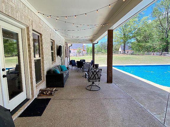 This custom built home sits on a 2.48 acre lot! An acre of that is wooded behind the fence in the backyard. Through the double wooden front doors is an open floor plan with a kitchen and living area along with the dining room. Lots of windows to allow for natural light and incredible views! In the back is a spacious master suite. Double vanity granite sinks, soaking tub, tiled shower, and HUGE walk in closet! There's also a bedroom near the master that is used as an office and has a closet. On the other side of the house is a walk in pantry with cabinets, laundry room, powder room, and mud room. Has a 3 car garage with an additional storage closet. Up the wooden stairs, there are 2 additional bedrooms, huge loft area, and a bathroom. The bathroom has double vanity sinks with granite. It has a separate room for the tub and toilet. Theres a huge amount of additional space to add on well over 900 additional sq feet if desired. Spacious covered porches on the front and back of the house! L shaped saltwater pool!