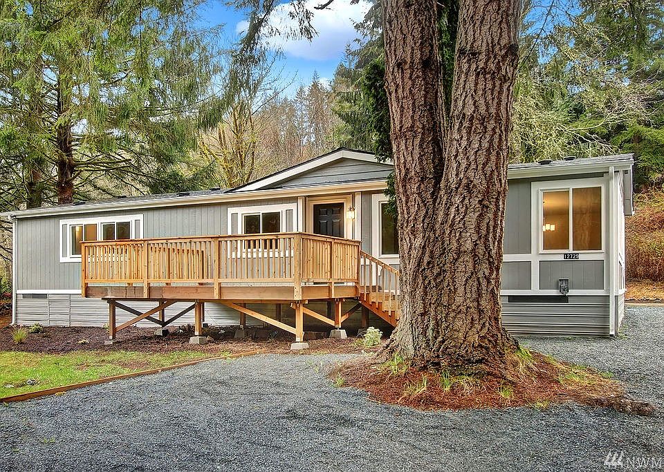 Like new 1300+ sqft 2Bd+Den, 2Ba Marlette Home in Arlington's Terrace Falls! Updated rambler includes: All new custom kitchen w/quartz slab counters, stainless steel appliances, Bentley Smoke wood laminate floors, craftsman millwork & door pkg, Master suite w/his and her closets, soaking tub & separate shower, new carpeting & vinyl throughout, 30 yr arch comp roof, freshly painted in&out, new landscape, updated electrical & plumbing, covered parking for 3! Enjoy huge deck w/views of waterfall!