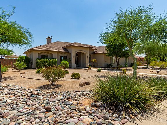 Outstanding and well Upgraded 4 Bedroom, 3 Bath home located in desirable Val Vista Estates on a 1+acre lot. With a view fence all-around of the beautiful mountains, landscape and more. New Appliances, New Pool decking, pool surface and Salt water system in the pool, New Exterior Paint, New Hot Water Heater. RV Gate, Oversized 3 car garage, Cabana in the Backyard. Front Door opens up to Spacious Great Room w/Custom framing, Chef's Kitchen, Quartz Counters, walk-in pantry. Bedrooms 1 and 2 feature En Suite Baths with walk-in showers. Spacious primary bedroom 1 has a soaker tub, a custom walk-in closet with shelving and room for everything, and access to the back patio and gorgeous views. Bedroom 4 can double as an office/den with French doors and blinds for privacy. Full hall bath and access to pool in backyard. Inside laundry room, lots of cabinets and countertops, Entertainers backyard with covered back patio and gorgeous views. Fast access to freeway for an easy commute.