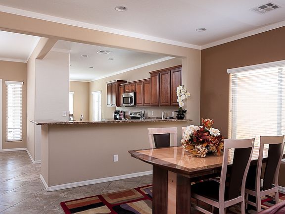 This beautifully updated Sage model boasts granite countertops, stainless steel appliances, frosted glass doors, extended diagonally-laid tile flooring, and crown molding. Enjoy the extended kitchen area, 2 large bedrooms, den/office area, 2 full bathrooms, and a garage floor with an epoxy-coated garage floor! You can enjoy one of the many fabulous Mesquite sunsets from the front of your home which has a great view of Flat Top Mesa. Please contact Kerry Johnson for more information.