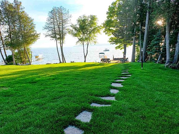 Words like immaculate, pristine, and breathtaking are thrown about often in real estate, but rarely are they more applicable than for this exceptional offering! With 6 bedrooms, 6 full and 1 half bathrooms, and roughly 5000 square feet of living space, this elegant estate blends a rustic motif with clean modern touches. This home has been thoughtfully cared for inside and out, and is truly one of the finest lake homes available on the market today. Outside is just as special, with nearly 8 acres of land and a beautiful gently sloping waterside lawn that ends at 100' of sunset-side Burt Lake frontage. The property also offers a shoreline deck to enjoy lakeside living at its finest, and a detached storage barn ensuring ample room for water toys and more! This is the total package and will not last long in today's market. Don't delay in arranging for your private showing!