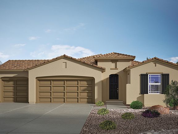 This beautiful 2 bedroom, 2 1/2 bath home comes standard with Whirlpool stainless steel appliances including a NATURAL GAS COOK TOP, fully venting micro-hood and electric oven. 17" tile is standard in the entry, vinyl flooring in kitchen, laundry, baths and carpet in all other areas. A NATURAL GAS furnace is standard. Raised panel interior doors, granite kitchen counter tops, E-stone in all baths, natural gas water heater, front yard landscaping with drip, extended covered patio and more. This specific build includes the following Builder upgrades: Master walk-in shower, tub/shower combo at bath 2, upgraded cabinets throughout and a 3 car garage.
