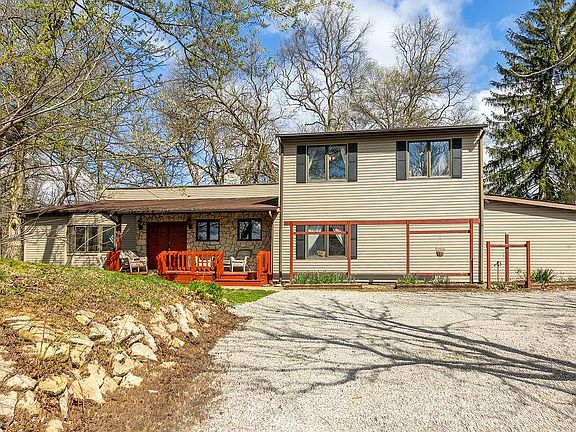 Lovely 2 story home with 2 car attached garage and 2 storage sheds ,with circle driveway located on 1.33 acres, Hardwood flooring covers first floor. Master bedroom has newly renovated master bath. Second bedroom and full bath. Kitchen offers quartz counter tops with stone sink. Gas range with convection oven. Large dining room and living room. Second floor has 2 bedrooms with full bath. Full basement with 1 bedroom and family room. Home heated with natural gas and wood forced air furnace. Home is 1.3 miles from Fairfield Medical Center.