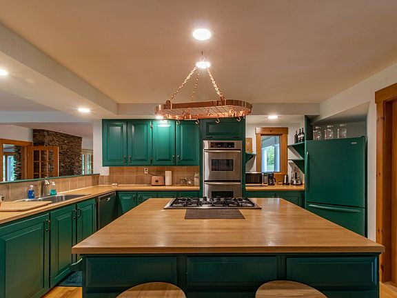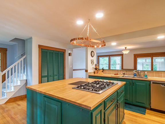 Escape to the lake with this stunning year-round property that has 190'of frontage on 776-acre Lake Salem. The main house is set back from the road on 6.83 acres with a long, gently sloping lawn leading down to the water. Gorgeous hardwood floors and double-sided gas fireplace with stone surround are a few of the home’s highlights. Emerald green cabinets greet you in the kitchen, while the large center island with gas cooktop and double wall oven make cooking for a holiday crowd an enjoyable event. Off the kitchen is a small dining area, as well as a sunroom. A table for 12 easily fits in the formal dining room and a step down takes you to the tiled family room with access to the back deck. Also on this floor is a guest room/study with built-in bookcases and a full bath. Up the spiral stairs is the main bedroom suite with a private balcony and full bath. Two additional bedrooms, one with an attached ¾ bath, are also on this level, along with several closets. The partially finished basement has a built-in desk. There’s a detached garage/workshop, and a second garage with guest space above the boasts 2 bedroom/living areas each with its own bath, plus deck space overlooking the lake. All of this is just minutes from downtown Newport, the hospital, and Newport Country Club. A 25-mile drive takes you to Jay Peak. With a whole-house generator and Google Nest your home will be comfortable and secure even when you’re away. Come and see and turn your lake living dream into a reality.