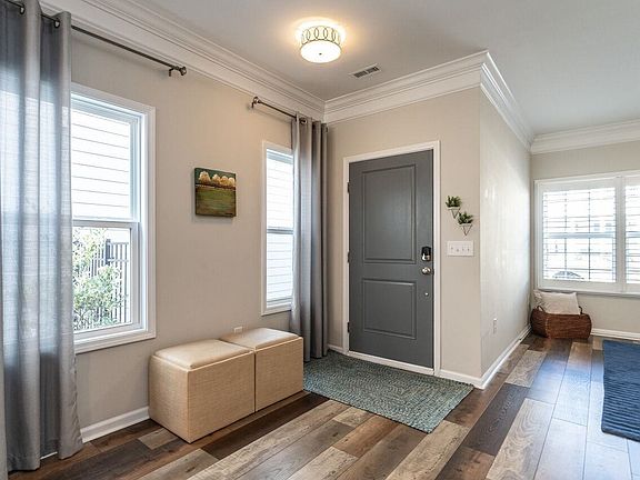 Live, Shop, Dine, Play, Highly Desired Sweetwater Community. Walk to the Incredible Neighborhood Amenities & the Underway Town Center. Craftsman Inspired Home, Rocking Chair Porches, Stone & Arched Accents, Private Paver Patio, Fenced Yard, Low Maintenance Landscaping. Once you open the glass door, the richness of the many upgrades captures your attention. Luxury 12mm laminate flooring & crown molding from the living/office thru-out the 1st floor. Gas fireplace, mantle, tile surround. Kitchen w/staggered cabinets, large Island & breakfast bar, pendant lights, granite tops, subway tile backsplash & SS appliances. Primary suite is a dream w/its own balcony, bath w/granite tops, 2 sinks, shower w/glass doors. 2 spacious bedrooms on 2nd floor, jack & jill bath. 3rd floor retreat can be 4th bedroom/bonus or flex room w/its own half bath. Upgraded carpet, ceiling fans w/remotes, upgraded lighting & custom blinds/shades are another bonus. 2 walk-in storage areas-3rd floor, pulldowns in  garage. Covered breezeway leads to 2 car garage. Amenities: Clubhouse, Gym, Pool, Playgrounds, Outdoor Grills, Dog Parks, Greenway.